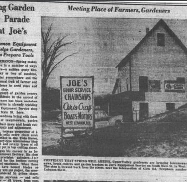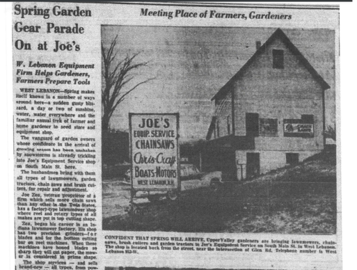 CONFIDENT That Spring Will Arrive,Upper valley gardeners are bringing lawnmowers,chainsaws,brushcutters and garden tractors in to Joes Equipment Services on south main street in West Lebanon. the shop is located back from the street,near the intersection of Glen rd.Telephone number is West Lebanon 953-w