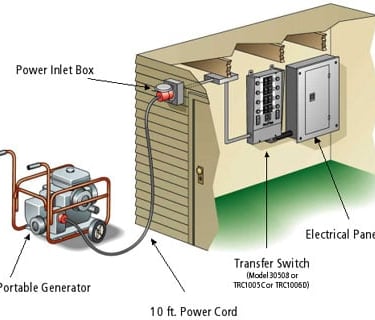 This allows you to power these circuits by connecting the generator to the transfer switch, instead of having to run extension cords to various items.